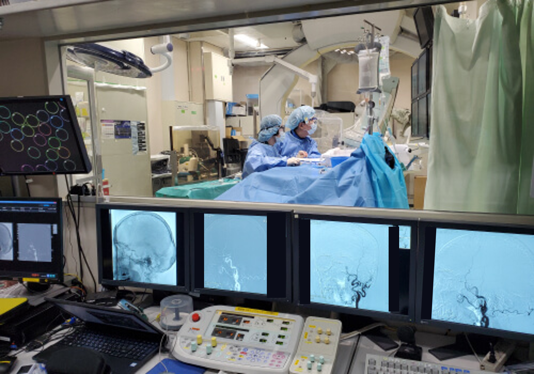 血管情報を得るための血管造影だけでなく脳動脈瘤をコイルで詰める治療や血栓回収術、狭窄している頸動脈にステントを留置する CASなどの血管内治療を行っています。