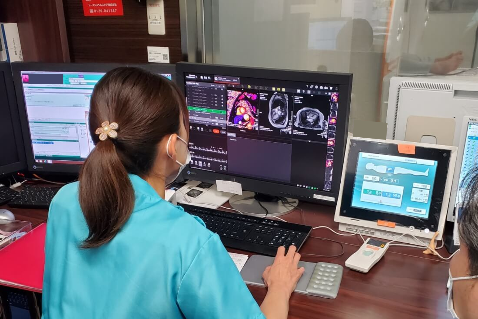 検査外来看護師は中央放射線部内で行う検査や治療を安全に行えるようにサポートしています。患者さんの容態確認や声かけにより異常の早期対応に努め、多職種連携の要となり、安全にそして安心して検査・治療を受けられるよう取り組んでいます。